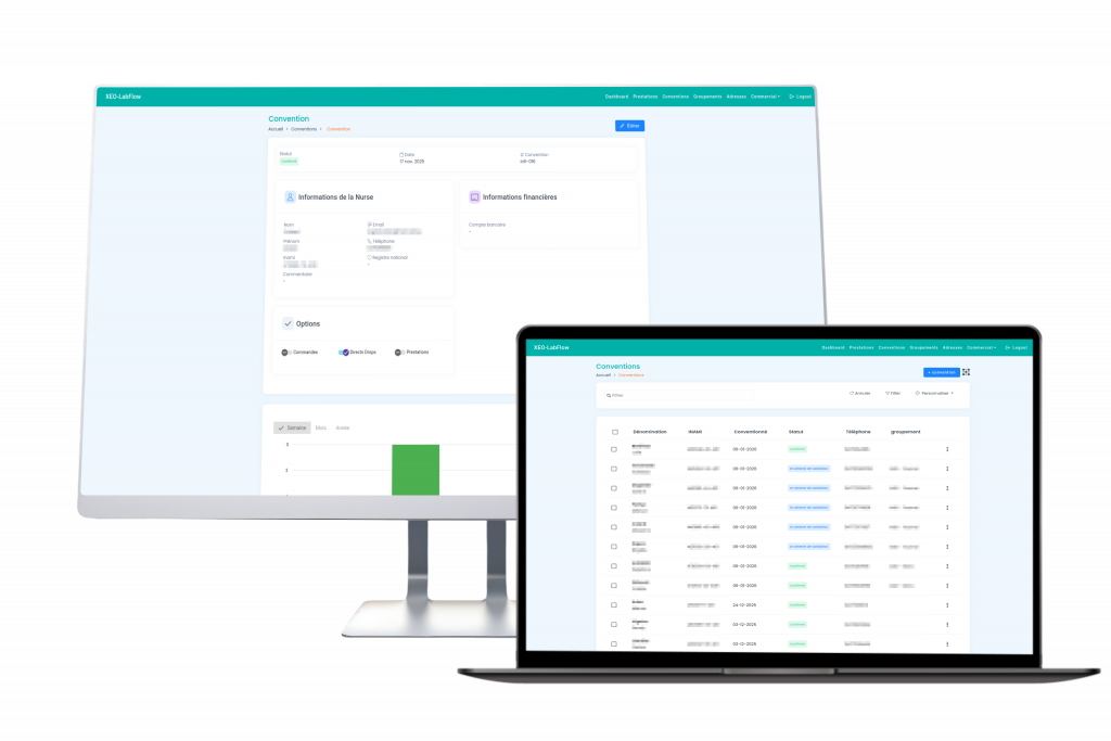 - Suivi administratif et envoi automatique des décomptes vers les laboratoires